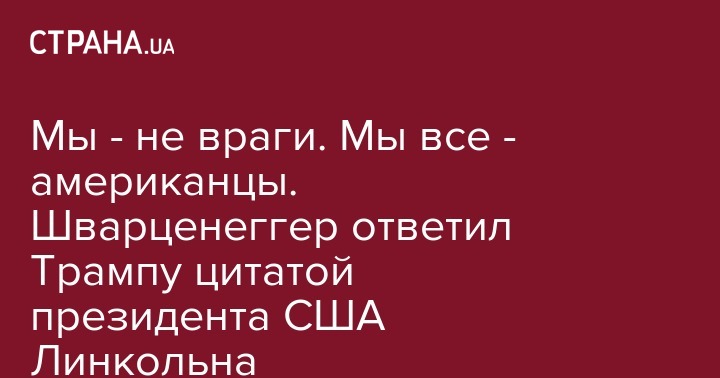 Мы - не враги. Мы все - американцы. Шварценеггер ответил Трампу цитатой президента США Линкольна