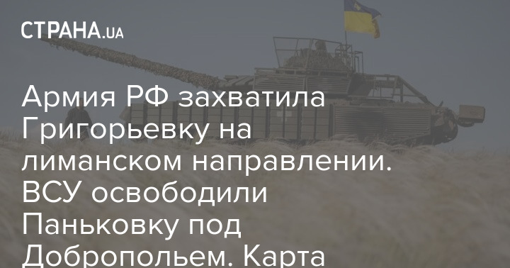 Армия РФ заняла Григорьевку на лиманском направлении, ВСУ зачистили Паньковку на добропольском направлении.