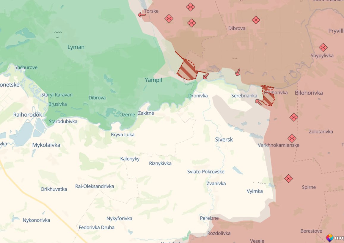 Также сообщается о продвижении россиян возле Ямполя (лиманское направление), возле Орехово (на границе Донецкой и Днепропетровской областей), в Новоивановке Запорожской области и Березово Днепропетровской области.