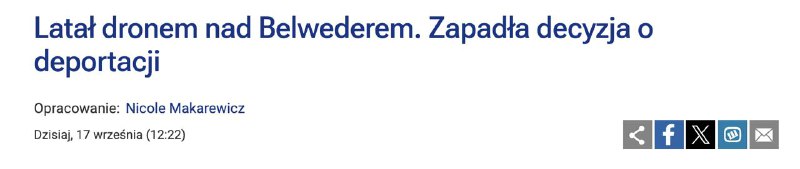 Из Польши депортируют в Украину молодого человека, запустившего дрон в Варшаве над резиденцией президента