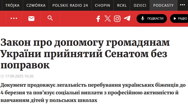 Напомним, Polskie Radio сообщало, что вето президента Навроцкого может создать сложности сотням тысяч украинцев.