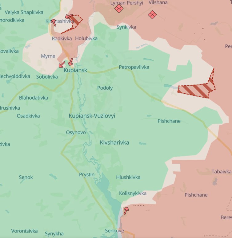 Армия РФ снова продвинулась на Купянском направлении - в районе Кондрашовки (к северу от Купянска) и Степной Новоселки (к востоку от города), сообщает Deep State.