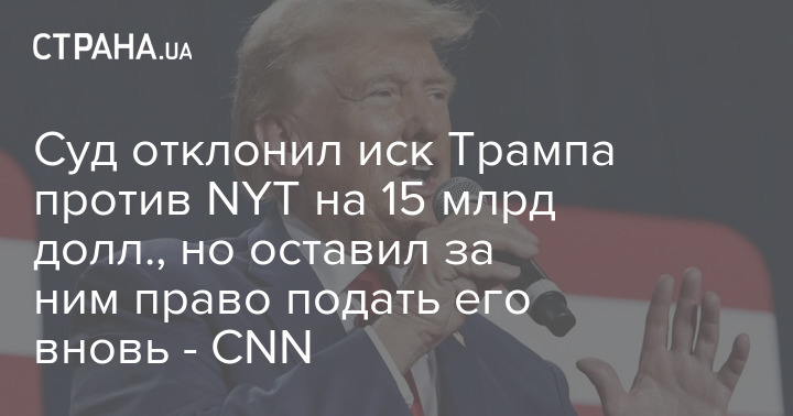 Суд во Флориде отклонил иск президента США Дональда Трампа против газеты New York Times на 15 миллиардов долларов, но оставил за ним право подать иск вновь.