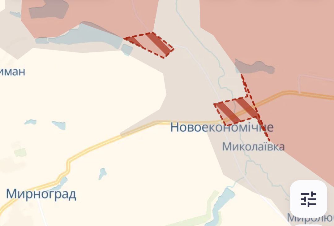 Также продвижение у РФ есть под Мирноградом (в Новоэкономическом, где в последнее время контратаковали ВСУ) и к югу от Константиновки (со стороны Романовки в направлении Клебан-Быка).