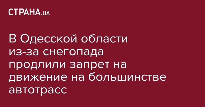 Сегодня, 8 января, в Одесской области продлили ограничение движения на автомобильных дорогах из-за сильного снегопада и ветра. Об этом сообщает Государственная служба автомобильных дорог.