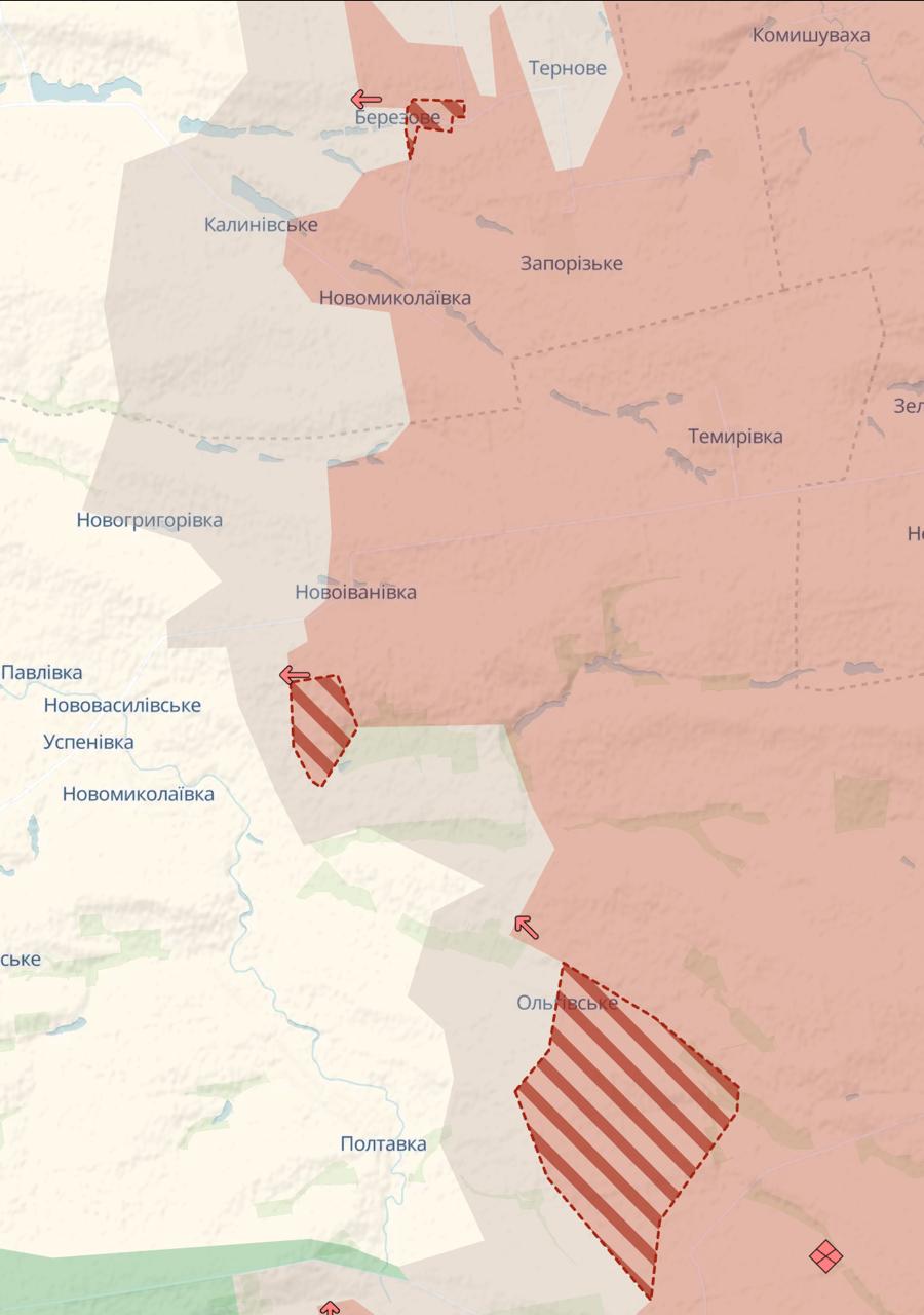 Армия РФ продвинулась в Березовом Днепропетровской области, а также южнее на двух участках Запорожской области, сообщает Deep State.