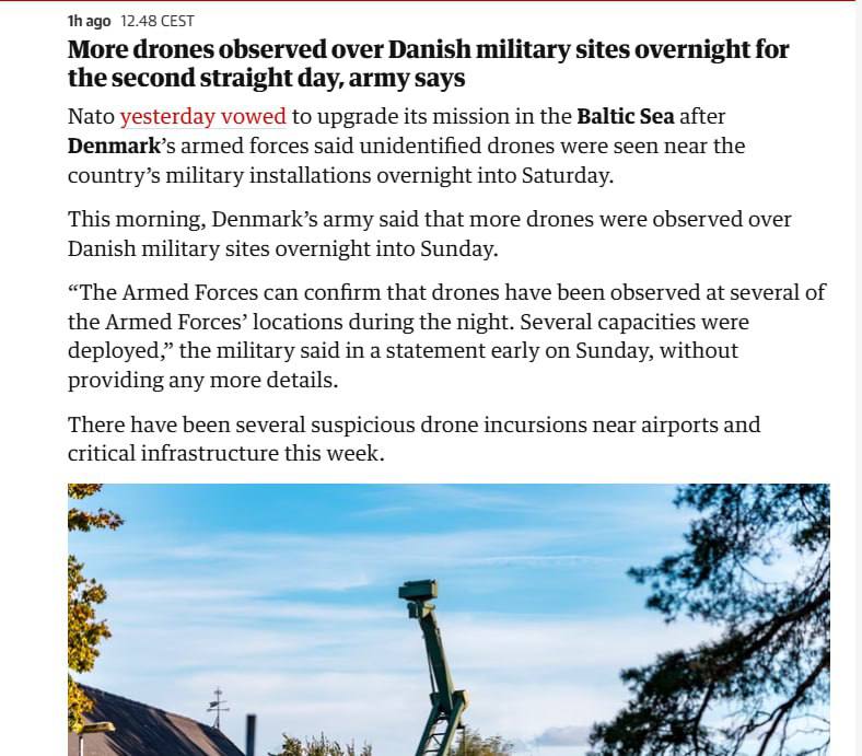 По их словам вооруженные силы Дании могут подтвердить, что беспилотники были замечены в нескольких местах дислокации вооруженных сил.