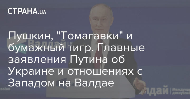 На 22-м заседании Международного дискуссионного клуба "Валдай" в Сочи президент России Владимир Путин прошёлся по НАТО и Евросоюзу, переложил ответственность за войну на Европу, ответил Дональду Трампу на реплику о бумажном тигре, но заявил о готовности поддержать план президента США по Газе. Он сообщил о продвижении войск на фронте, а также рассказал о заработках на поставках урана в Штаты. Не обошлось и без цитаты из Александра Пушкина.