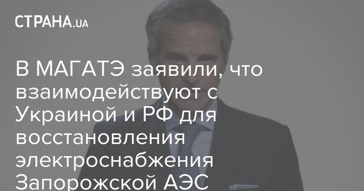 Генеральный директор МАГАТЭ Рафаэль Гросси заявил, что агентство взаимодействует с Украиной и Россией, чтобы помочь проложить путь к скорейшему восстановлению внешнего электроснабжения Запорожской АЭС.
