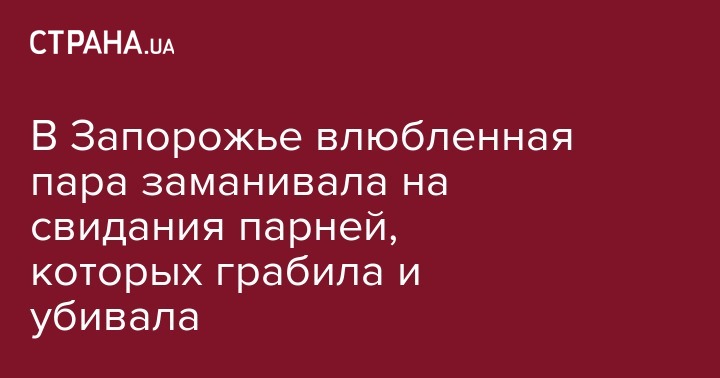 В Запорожье задержали девушку, которую подозревают в организации ограблений и убийств в городе. Преступница работала в паре со своим парнем. Вместе они заманивали обеспеченных горожан на свидание, а затем грабили и убивали их. Об этом сообщает Gazeta.zp.ua.