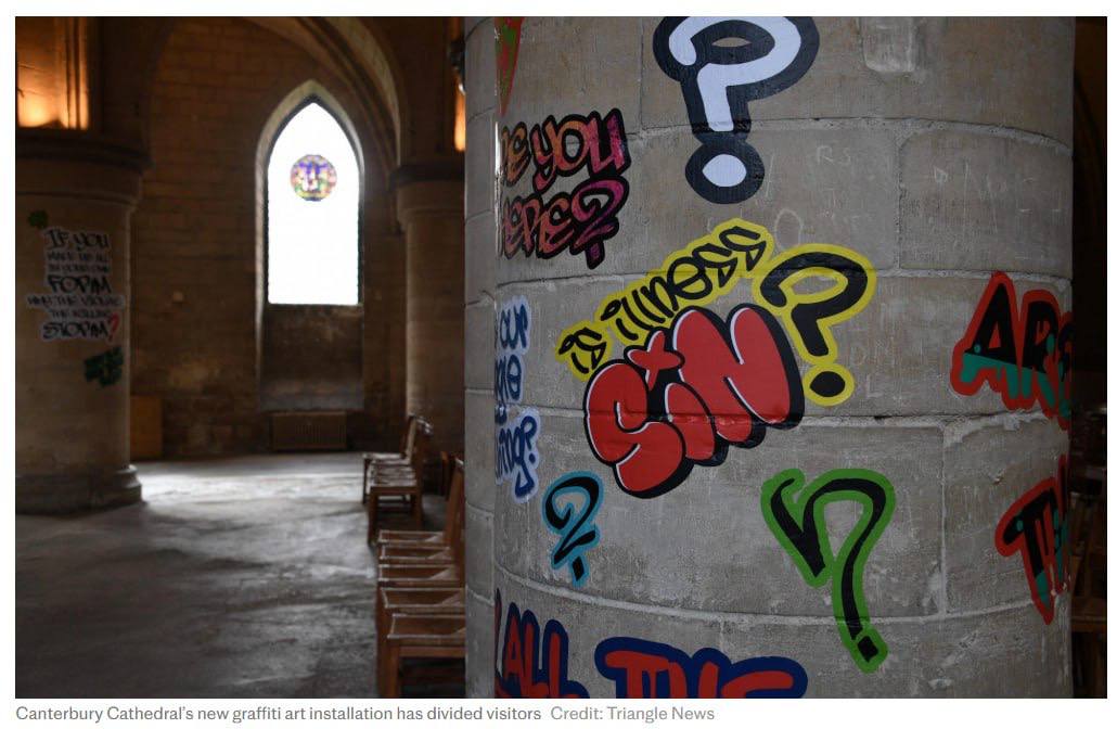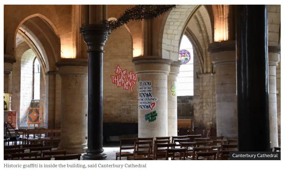 Представители ЛГБТКИА+ изрисовали главный храм Великобритании. Новый архиепископ Кентерберийский Сара Муллали (первая в истории женщина на этом посту) решила провести "арт-инсталляцию" в Кентерберийском соборе, пригласив множество художников из "маргинализованых групп".