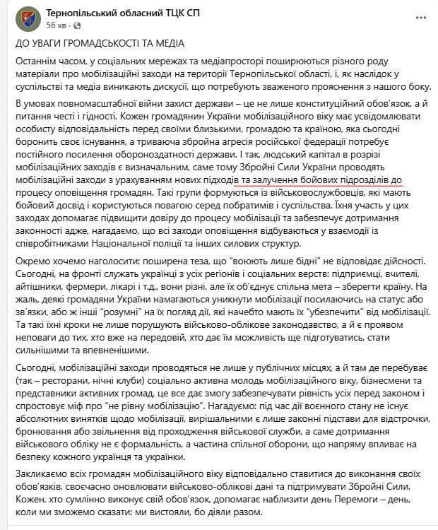 Об этом сообщает пресс-служба Тернопольского областного ТЦК и СП на своей странице в Facebook.