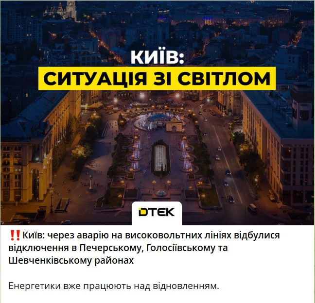 Также в ДТЭК обещают киевлянам, у которых нет света, вернуть электроэнергию к полуночи.