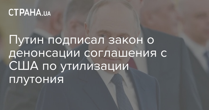 Президент РФ Владимир Путин подписал закон о денонсации межправительственного соглашения с США "Об утилизации плутония, заявленного как плутоний, не являющийся более необходимым для целей обороны, обращении с ним и сотрудничестве в этой области", а также протоколов к нему.