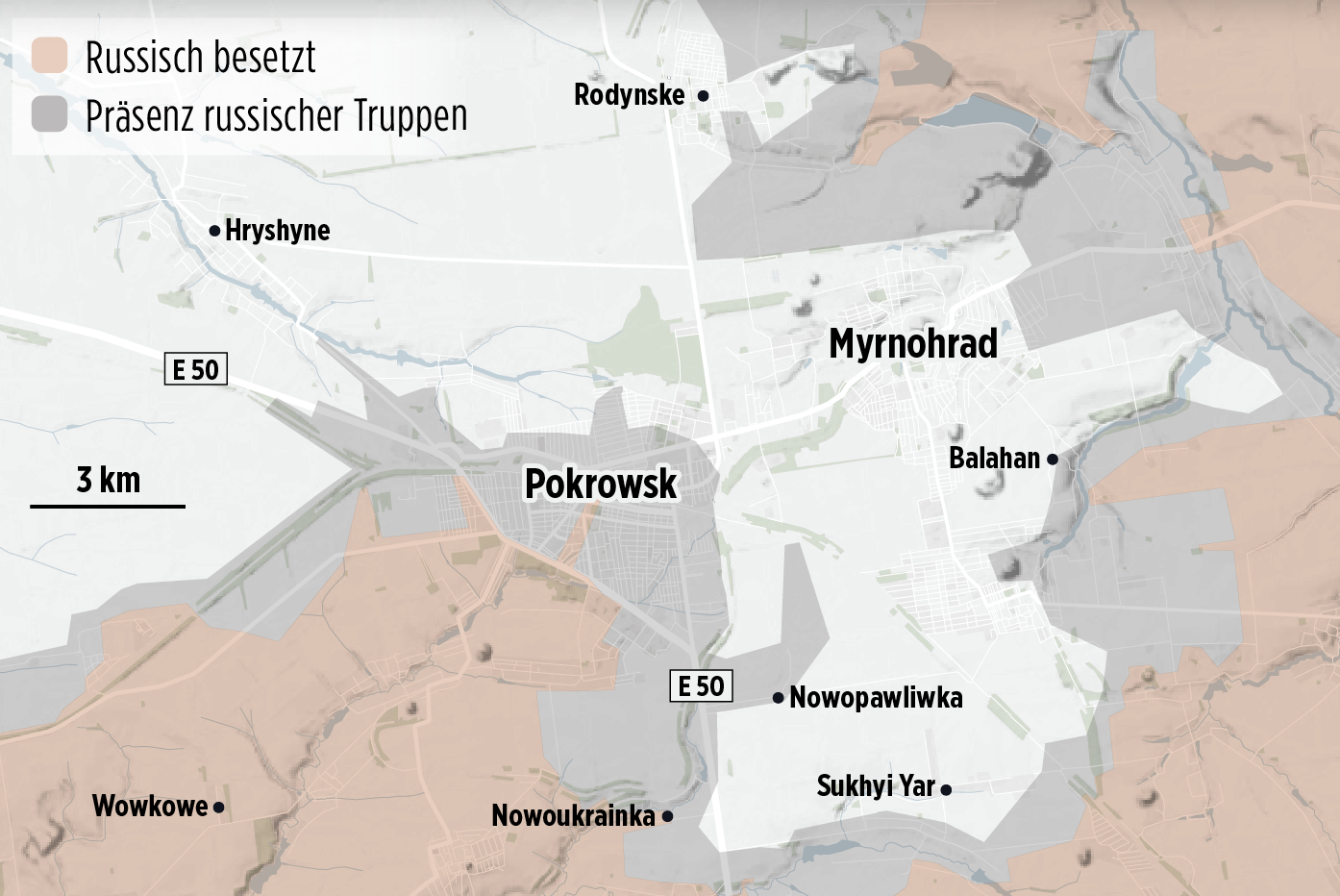 В то же время в украинском Генштабе не признают критичности ситуации. Вчера в ГШУ заявили, что по состоянию на сегодняшний день в Покровско-Мирноградской агломерации нет окружения или блокирования городов российскими войсками.