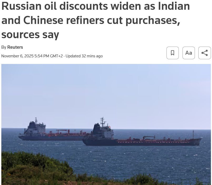 При этом источники отмечают, что причиной увеличения скидок является то, что крупные индийские и китайские нефтеперерабатывающие заводы сокращают закупки после новых санкций США в отношении ведущих российских производителей.