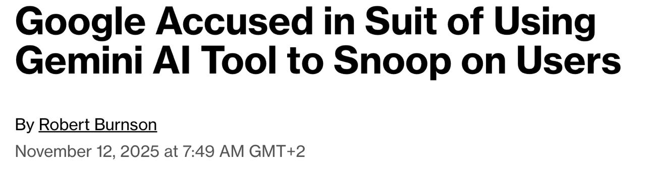 Американскую компанию Google обвиняют в использовании ИИ-инструмента Gemini AI для слежки за пользователями. В федеральный суд Сан-Хосе (штат Калифорния) поступил соответствующий иск.