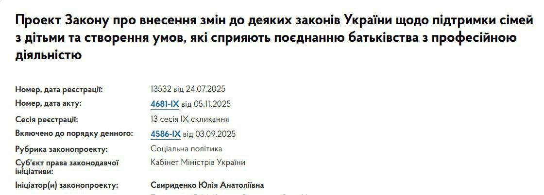 Соответствующий статус указан в карточке законопроекта №13532 на сайте Верховной Рады.