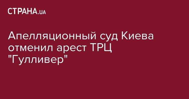 Апелляционный суд Киева отменил решение об аресте торгово-развлекательного центра "Гулливер", признав выводы Шевченковского районного суда о связи с банком-банкротом "Михайловский" безосновательными. Об этом сообщают "Украинские Новости"