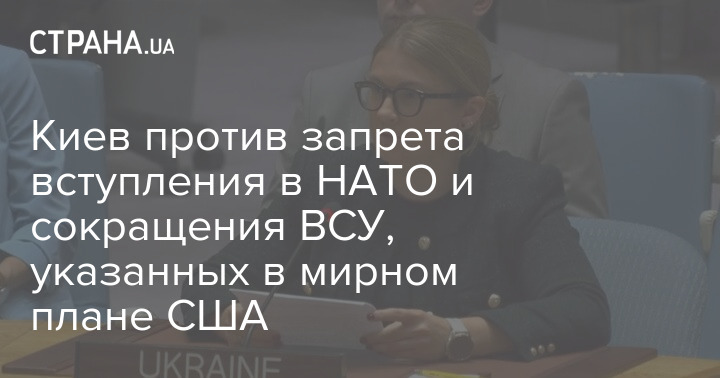 Киев против запрета вступления в НАТО и сокращения ВСУ, указанных в мирном плане США