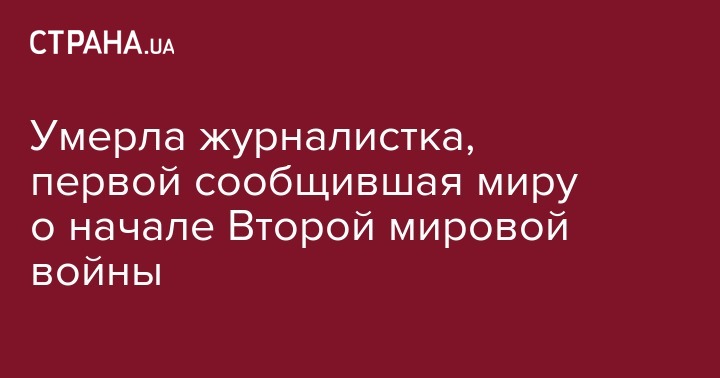 Таким образом, она стала первой журналисткой, сообщившей о фактическом начале Второй мировой войны.