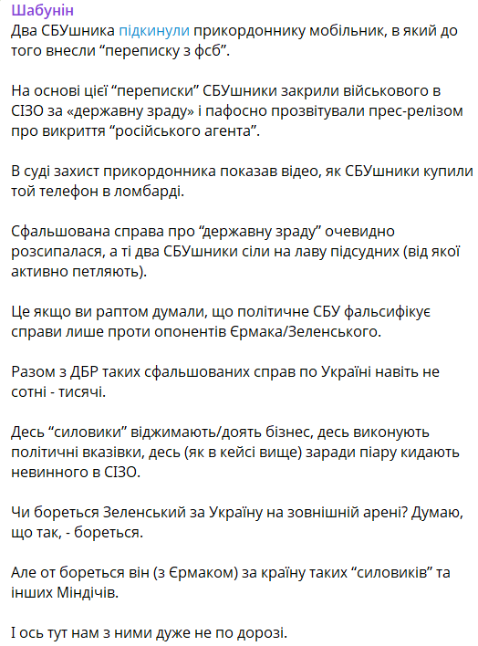 "Где-то силовики отжимают/доят бизнес, где-то выполняют политические указания, где-то (как в кейсе выше) ради пиара бросают невиновного в СИЗО", - написал Шабунин.
