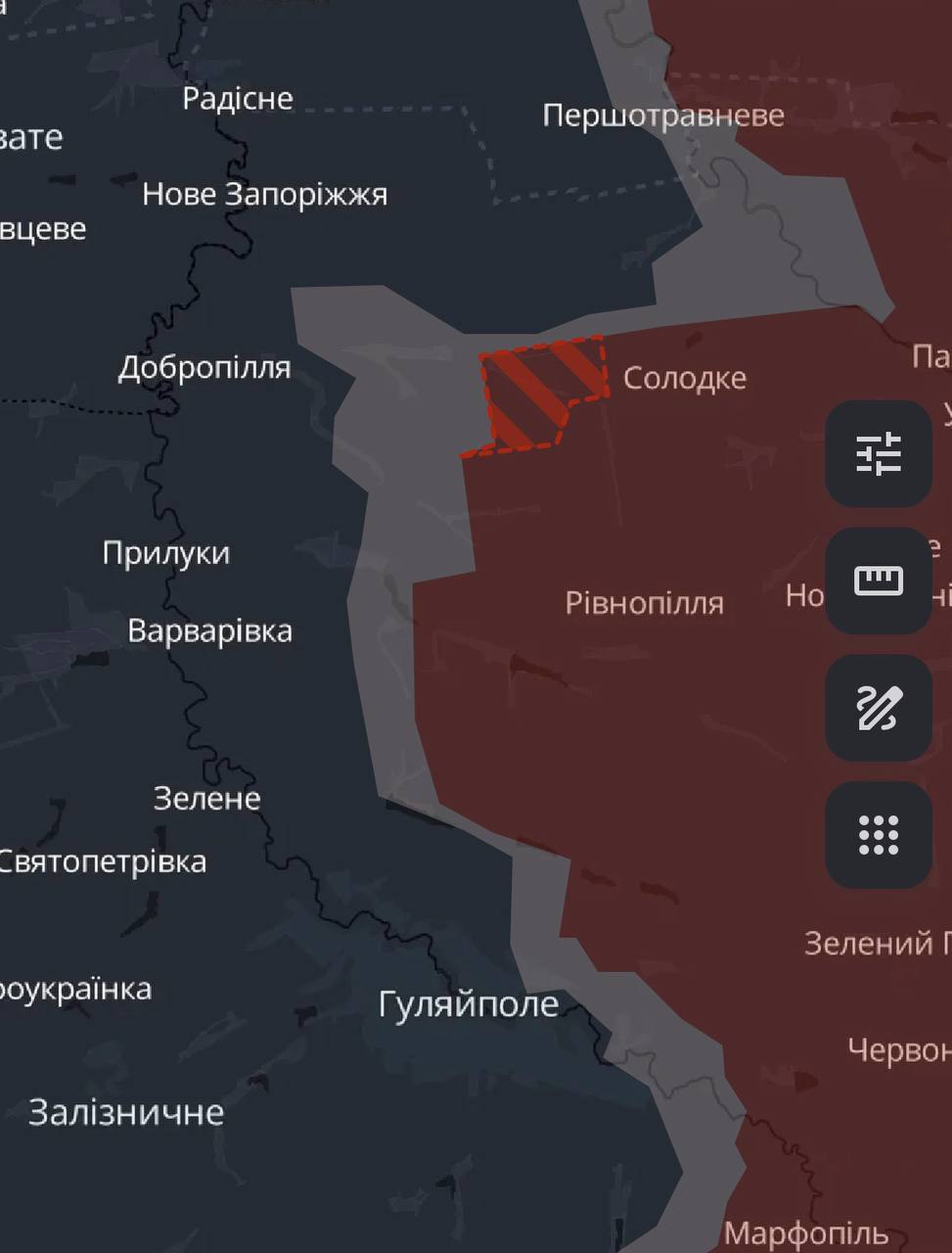 По данным паблика, российские войска продвинулись у Ямполя Донецкой области и у Сладкого Запорожской области, к северу от Гуляйполя.