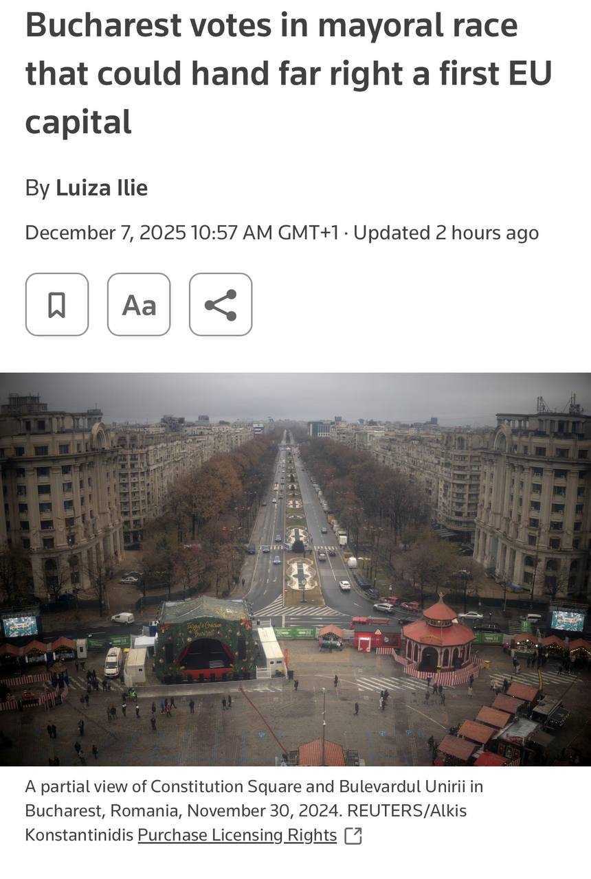 "Баллотирующаяся как независимый кандидат при поддержке оппозиционного праворадикального "Альянса за объединение румын" делит первое место с левым социал-демократом Даниэлем Балутой в избирательной гонке за пост мэра Бухареста. С одной стороны, ставки для AUR огромны: победа в столице развеет идею о санитарном кордоне, изолирующем экстремистские партии", — сказал Серджиу Мискою, профессор политологии в Университете Бабеша-Бойяи.