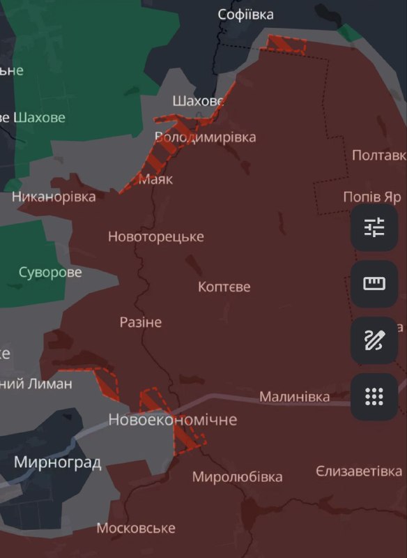 07:47 Россияне продвинулись к востоку от Мирнограда, а также севернее, у основания бывшего Добропольского выступа. Об этом сообщает военный телеграм-канал Deep State.
