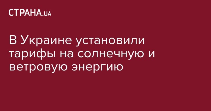 В Украине установлены для частных домохозяйств "зеленые" тарифы на электроэнергию, производимую солнечными и ветровыми установками. Соответствующее постановление приняла Нацкомиссия, осуществляющая государственное регулирование в сферах энергетики и коммунальных услуг, говорится на сайте комиссии.