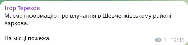19.42 Прилет в Шевченковском районе Харькова, сообщает мэр города Терехов.