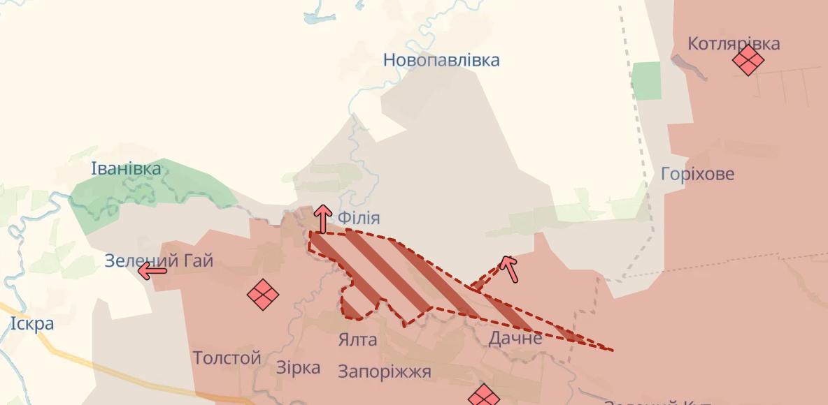 10.40 Армия РФ продвинулась в Гуляйполе и Мирнограде, а также их окрестностях, сообщает Deep State. Кроме того, у РФ продвижение в Днепропетровской области около Филии.