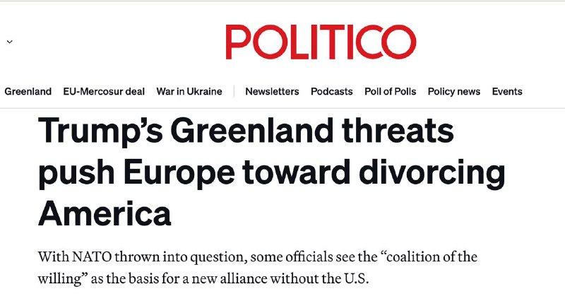 Некоторые официальные лица Европейского союза рассматривают создание нового военного объединения с участием Украины, но без США. Такое решение уже зреет из-за угроз американского президента Дональда Трампа захватить Гренландию.