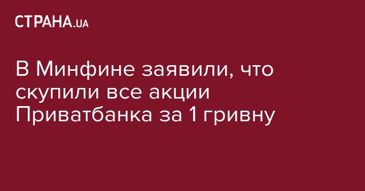В Минфине заявили, что скупили все акции Приватбанка за 1 гривну