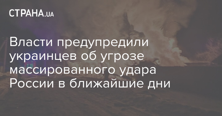 Власти предупредили украинцев об угрозе массированного удара России в ближайшие дни