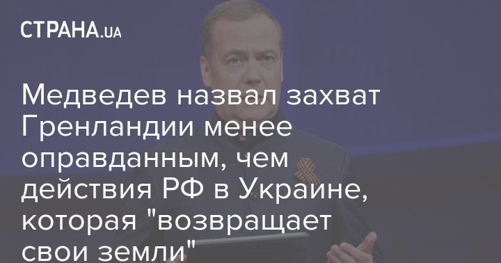 Заместитель председателя Совета безопасности Российской Федерации Дмитрий Медведев заявил, что захват Гренландии американцами будет менее законным, чем претензии Москвы на территории Украины, поскольку Россия возвращает себе свои земли, веками входившие в ее состав.