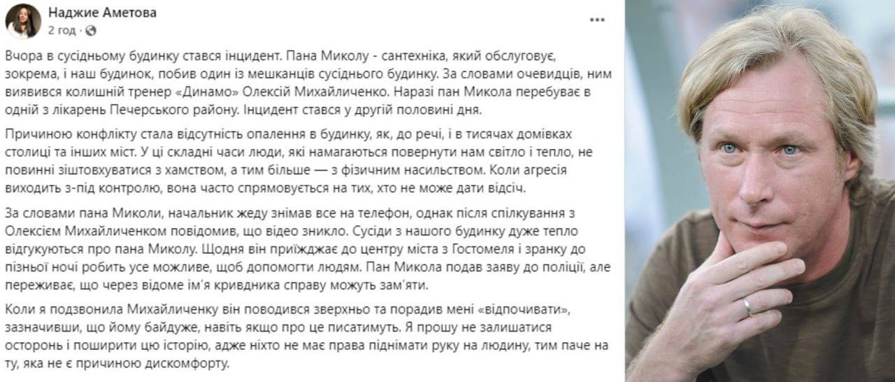 Аметова рассказала, что звонила Михайличенко по поводу избиения, но тот общался с пренебрежением, посоветовал "отдохнуть" и заявил, что его не заботит публичное обсуждение инцидента.