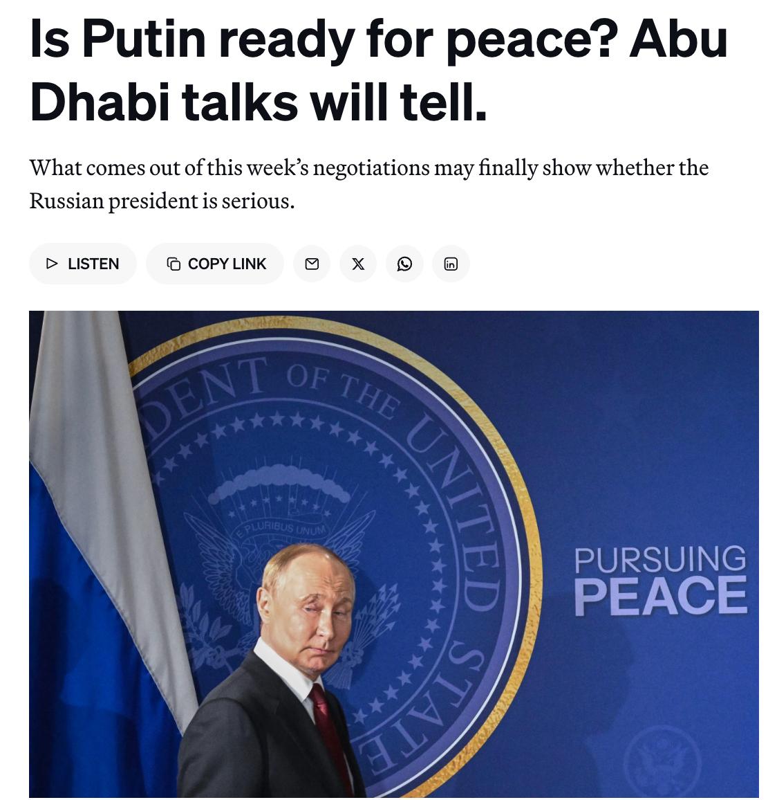 Начинающиеся сегодня переговоры в Абу-Даби могут быть более многообещающими, чем все ожидают. И дают шанс окончить войну весной.