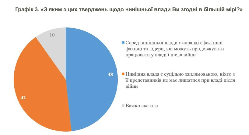 42% респондентом считают, что нынешняя власть сплошь запятнана, никто из её представителей не должен оставаться при должностях после войны. 48% полагают, что неплохие специалисты есть и в этой власти и они заслуживают того, чтобы остаться на работе.