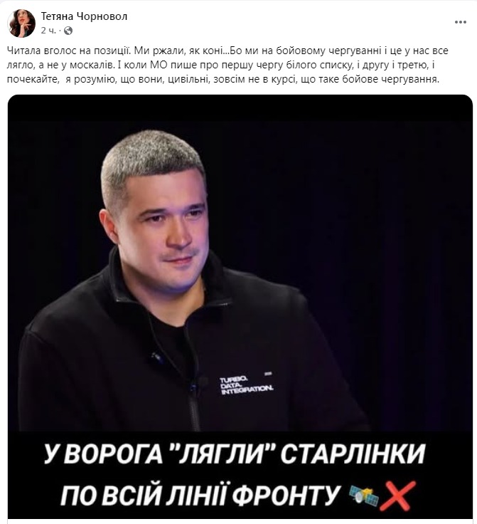 Черновол пожаловалась, что ее бойцы остались без связи от Starlink