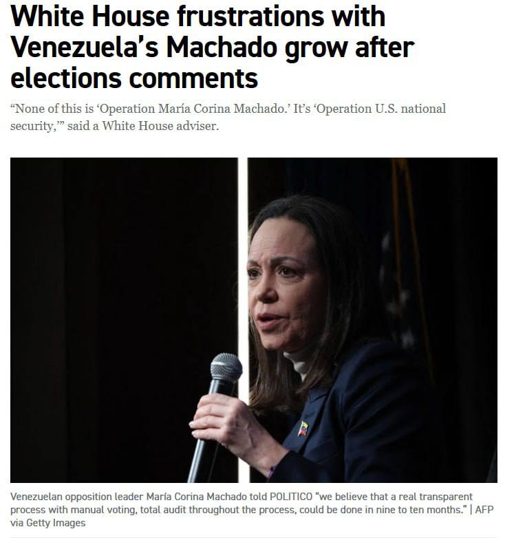 Президент США Дональд Трамп и Белый дом все больше разочаровываются в Марии Корине Мачадо, лидере венесуэльской оппозиции.