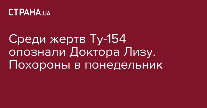 Среди жертв Ту-154 опознали Доктора Лизу. Похороны в понедельник