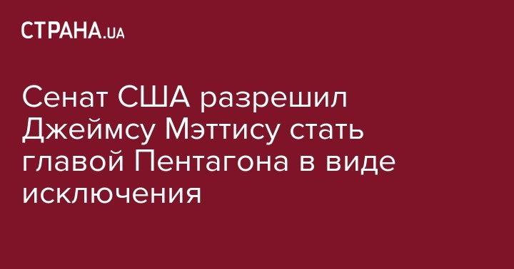 Сенат США проголосовал за единоразовое исключение в законе, позволяющее отставному генералу Джеймсу Мэттису претендовать на пост главы Минобороны США. Об этом сообщает Русская служба ВВС.