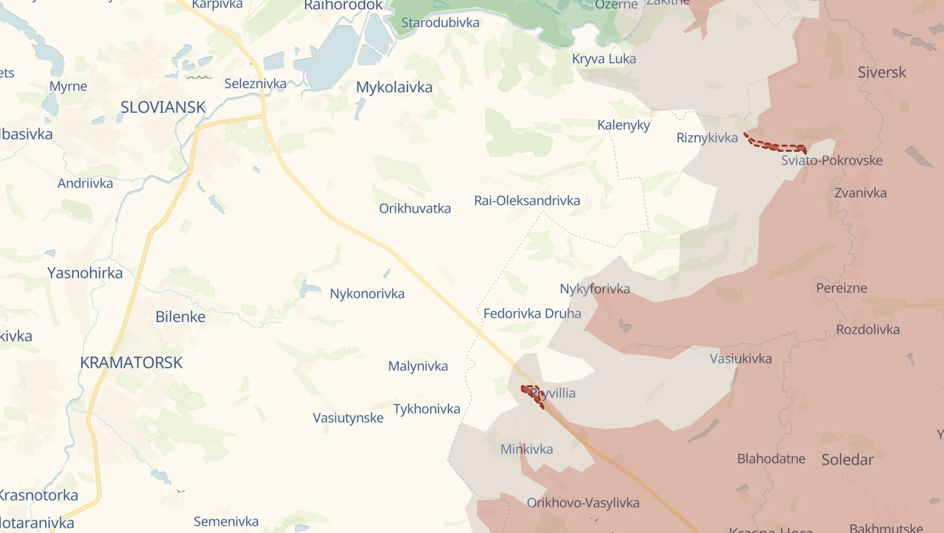 По трассе Бахмут-Славянск они продвинулись в районе Приволья и Голубовки, сообщает военный паблик DeepState. Севернее РФ наступает в районе Резниковки.