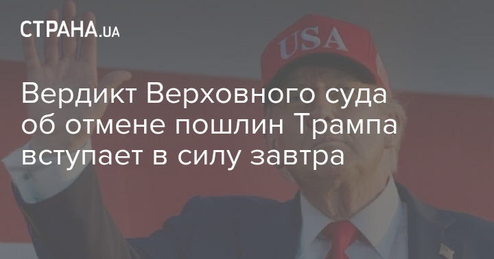 Отмена Верховным судом США введенных американским президентом Дональдом Трампом пошлин вступает в силу завтра.