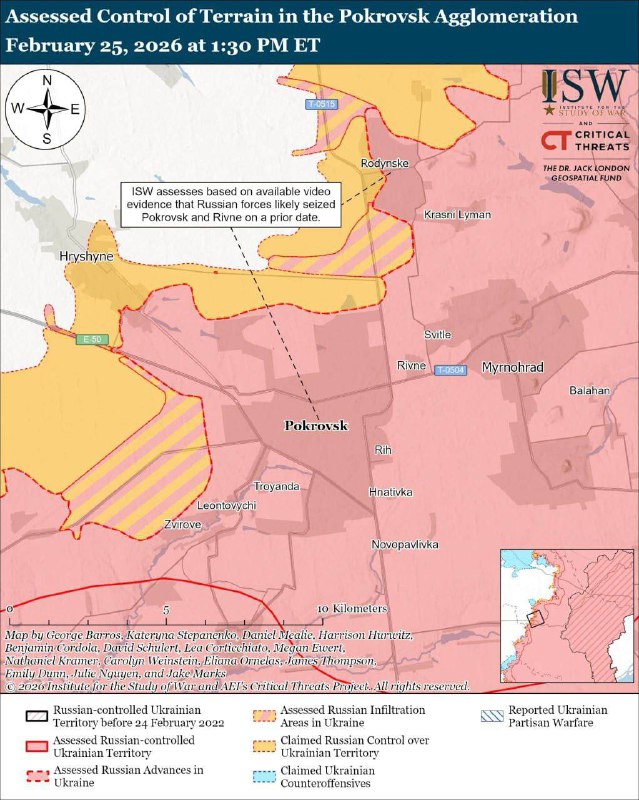 ISW считает Покровск и Мирноград полностью захваченными россиняами. Карты