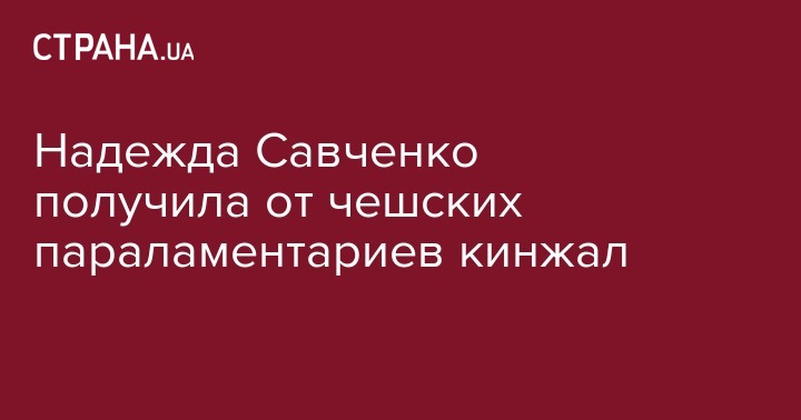 Украинскому депутату Верховной рады Надежде Савченко в Чехии подарили инкрустированный кинжал. Как сообщает издание České noviny, подарок ей вручили депутаты парламента Чехии.