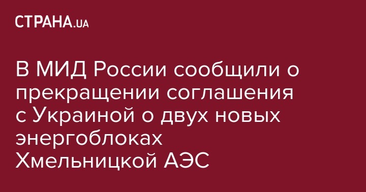 Министерство иностранных дел России сообщило о прекращении действия межправительственного соглашения между с Украиной по строительству двух новых энергоблоков Хмельницкой атомной электростанции.