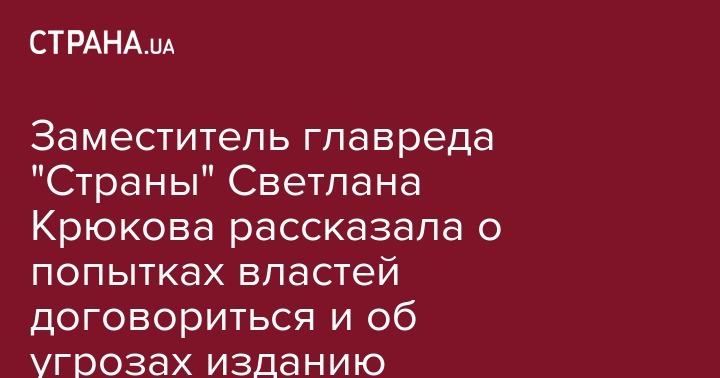 Заместитель главного редактора интернет-газеты "Страна" Светлана Крюкова в интервью Телекритики рассказала об угрозах и давлении на издание.