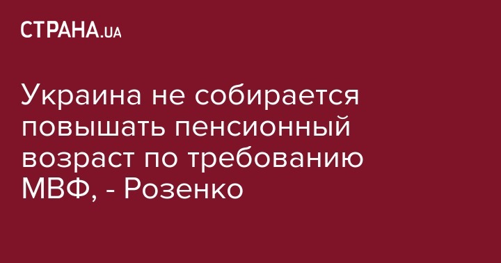 "Этого нет ни в Меморандуме с МВФ, ни в других обязательствах перед другими институциями. Я уверен, что нынешнее правительство и власти не сделают никаких шагов по повышению пенсионного возраста", - сказал Розенко.